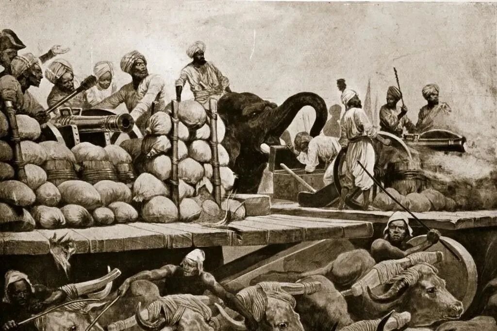 此后,英国人确信自己已经有了压倒莫卧儿帝国的实力,很快对其发动了正面挑战。公元1764年10月,东印度公司派出1.7万军队在印度东北部的布克萨尔对4万莫卧儿军队发起了进攻。