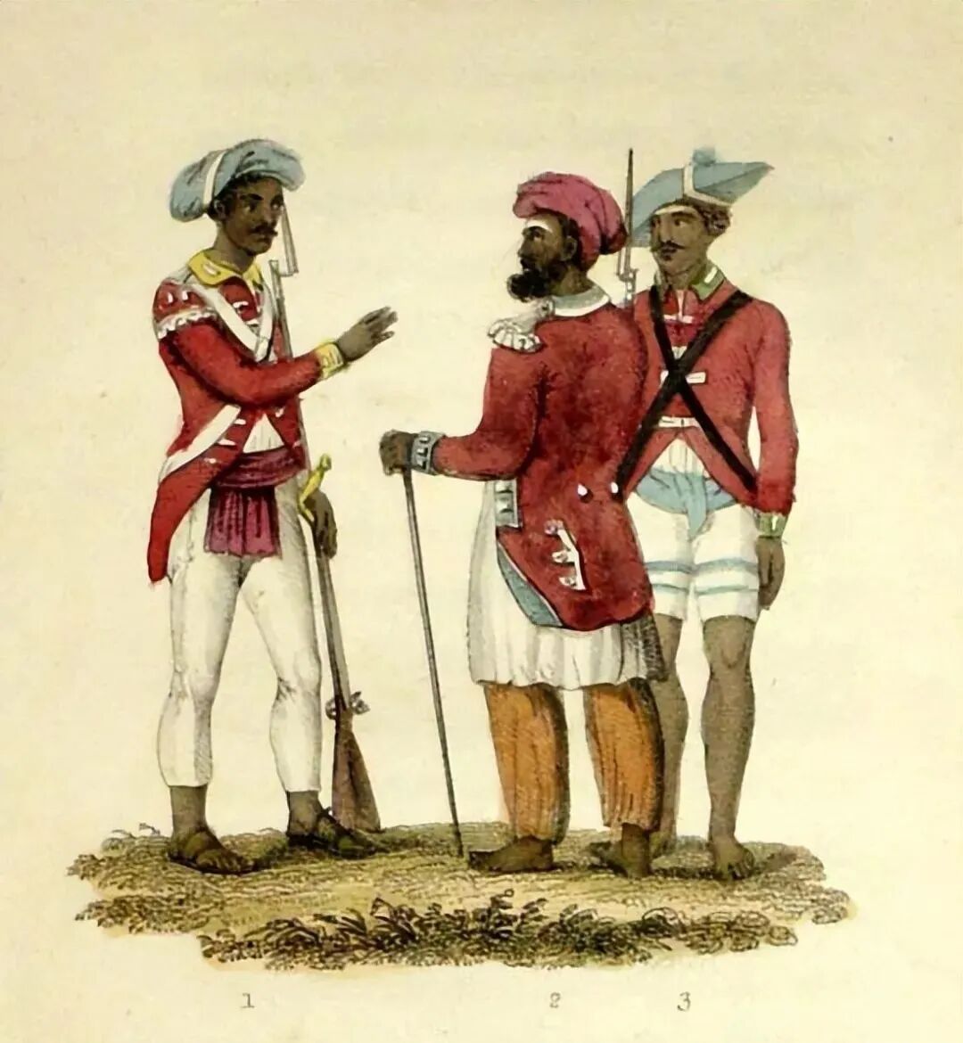 此外,在征服印度的过程中,东印度公司也招募了大量印度军队为自己作战。到公元1850年代,其控制的印度军队已经达到了30万人,远远超过了在印度的英军数量(5万人)。另外,当时英国还开始将印度士兵调出印度,帮助其侵略阿富汗、波斯、缅甸和中国等国,这也在印度军队中招致了强烈不满。