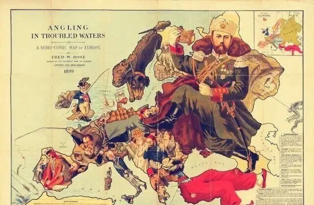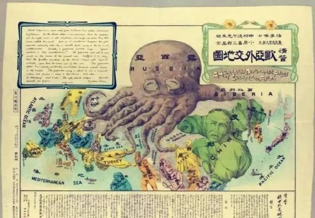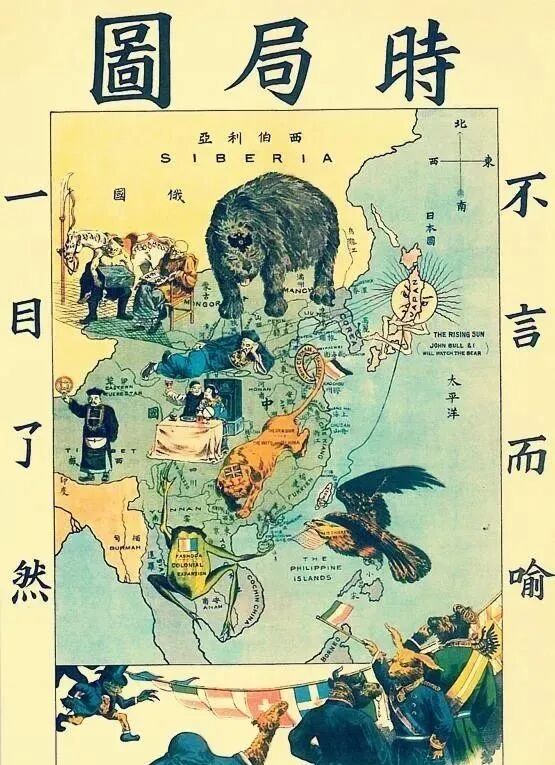 浑水钓鱼图1899年,注意每个国家手中发出去的线,他们都在钓上属于自己的猎物,当然沙俄是当时最大的渔夫。
