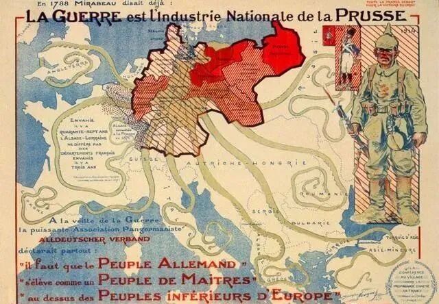 1914年,好战的普鲁士作为一只章鱼的触角伸向欧洲。