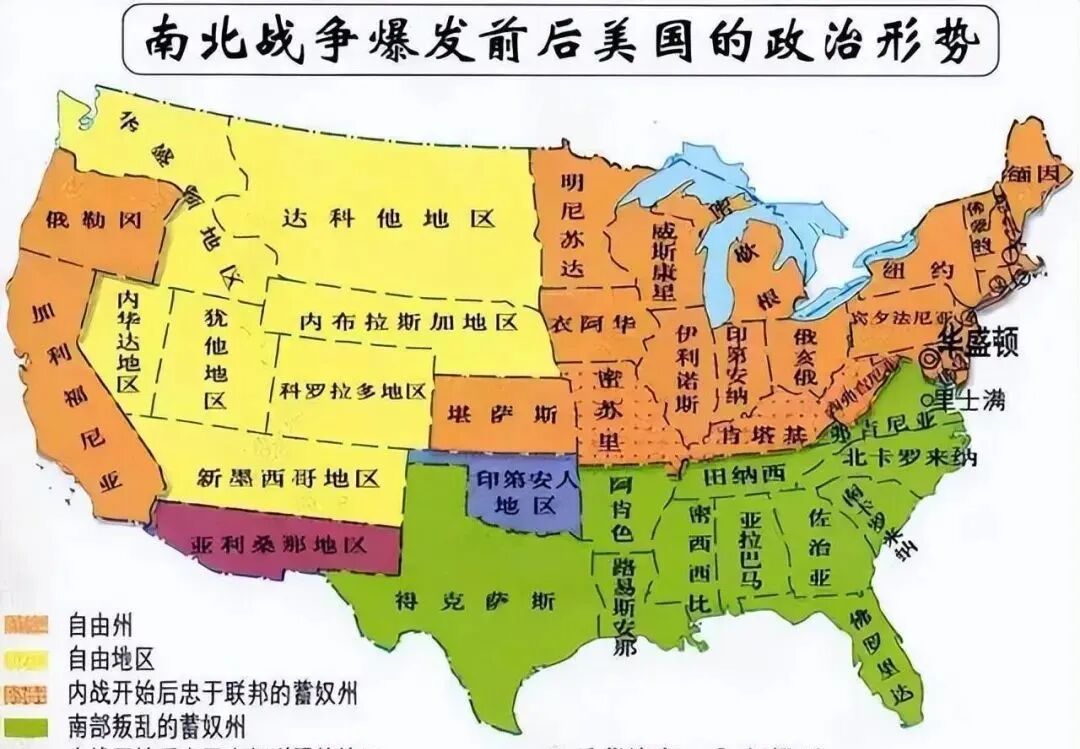 北方因为地理条件的优势,工商业发达,而南方则是以农业和种植业为主,大批黑奴在南方的农场里劳作,没有选举和被选举权。