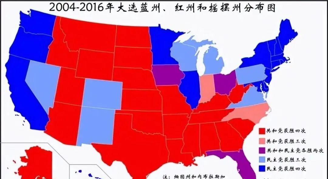 2004-2016美国大选各州分布图