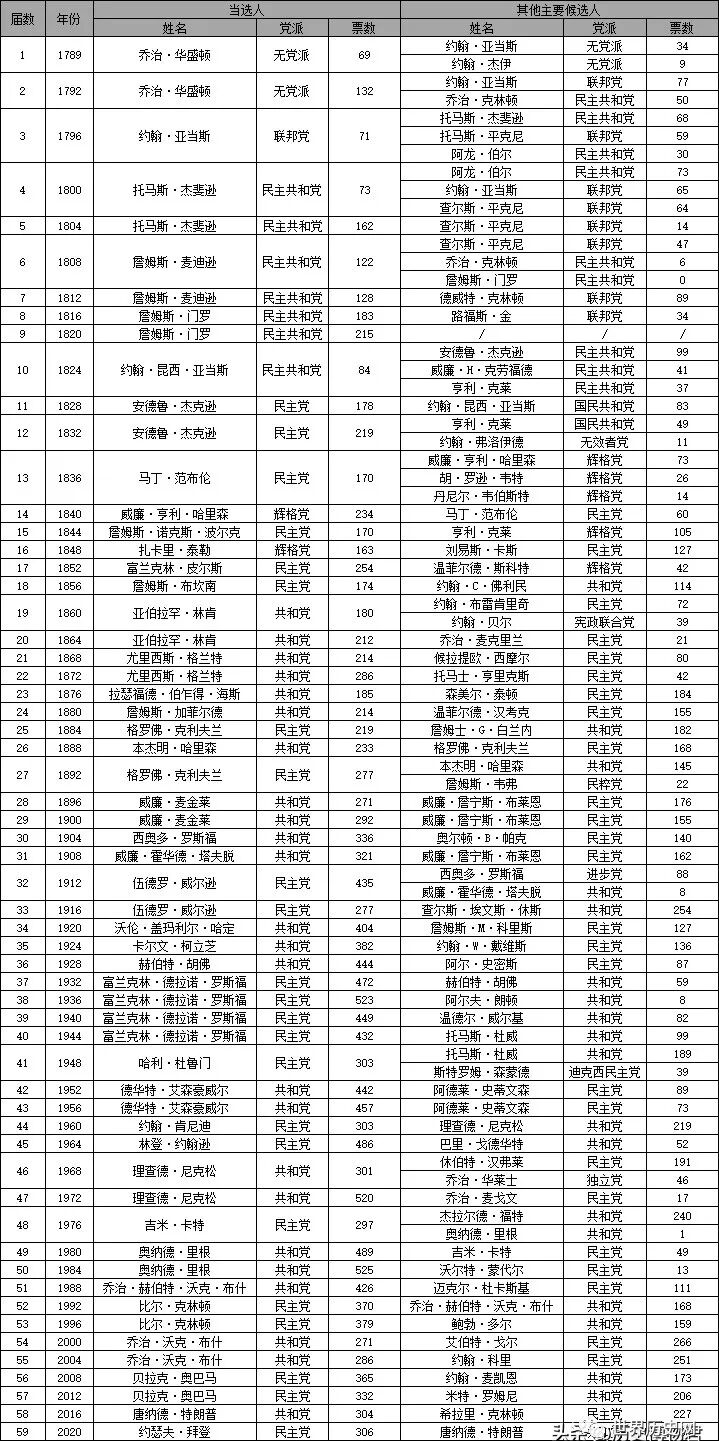 首先,附上一张历届美国总统选举结果图: