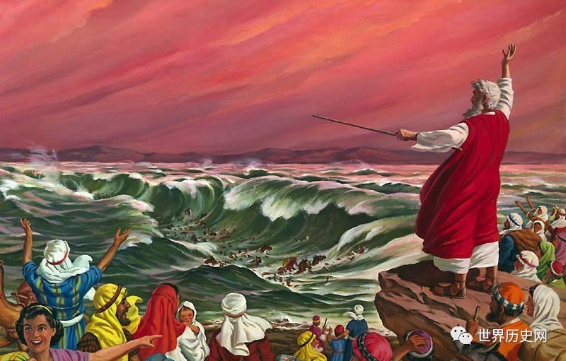 被说服的摩西带着同胞们逃到了红海前,摩西在上帝的帮助下劈开了大海,让以色列人如履平地般的穿过大海,而前来追赶的埃及人被巨大的水墙淹没了。后来摩西带着族人来到了西奈山,上帝在此颁布了十诫和律法。这些律法也就是犹太教信仰体系的根基。而后来摩西也被尊为犹太教的先知。