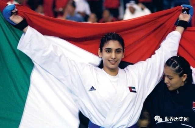 在北京奥运会上,梅萨公主穿着一身阿拉伯地区的传统黑袍出席,挥动着旗帜,唇角勾勒着一丝柔美又坚毅的微笑。