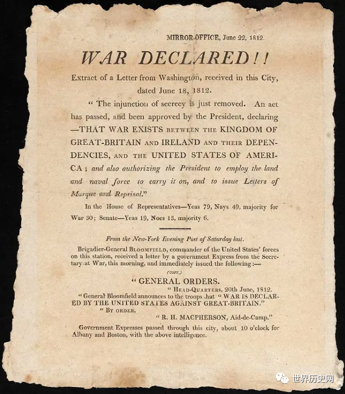 国会于 1812 年 6 月 18 日宣战,最直接的理由是 1811 年 11 月的蒂珀卡诺战役,在这场战役中,未来的美国总统威廉·亨利·哈里森率领的美国陆军士兵与特库姆塞领导的肖尼战士作战。