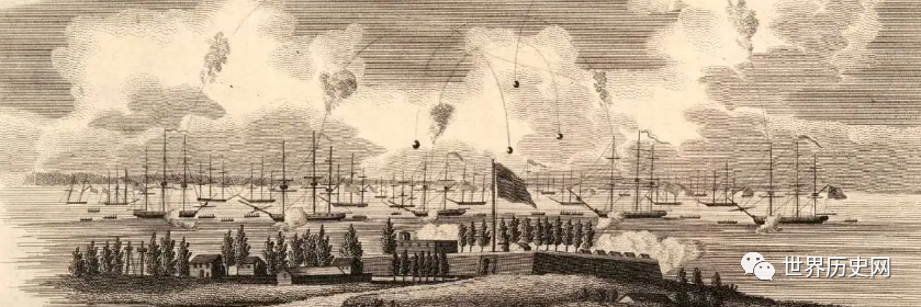 再往南,沿着大西洋海岸,英国人同时寻求占领马里兰州的主要城市巴尔的摩。9 月 13 日至 14 日夜间,英国人轰炸了保护城市的麦克亨利堡。