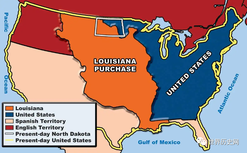 1802年,法印战争结束时法国赠予西班牙的路易斯安那领地突然归还给法国。突然之间,美国无法再进入位于墨西哥湾密西西比河河口的新奥尔良港。