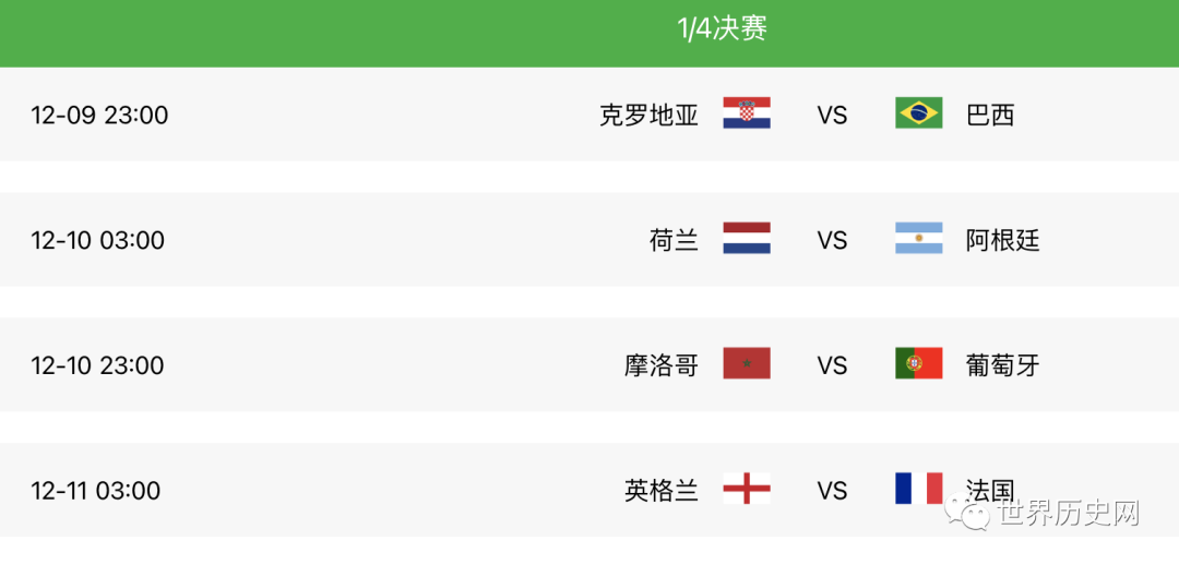 2022年世界杯八强对阵图