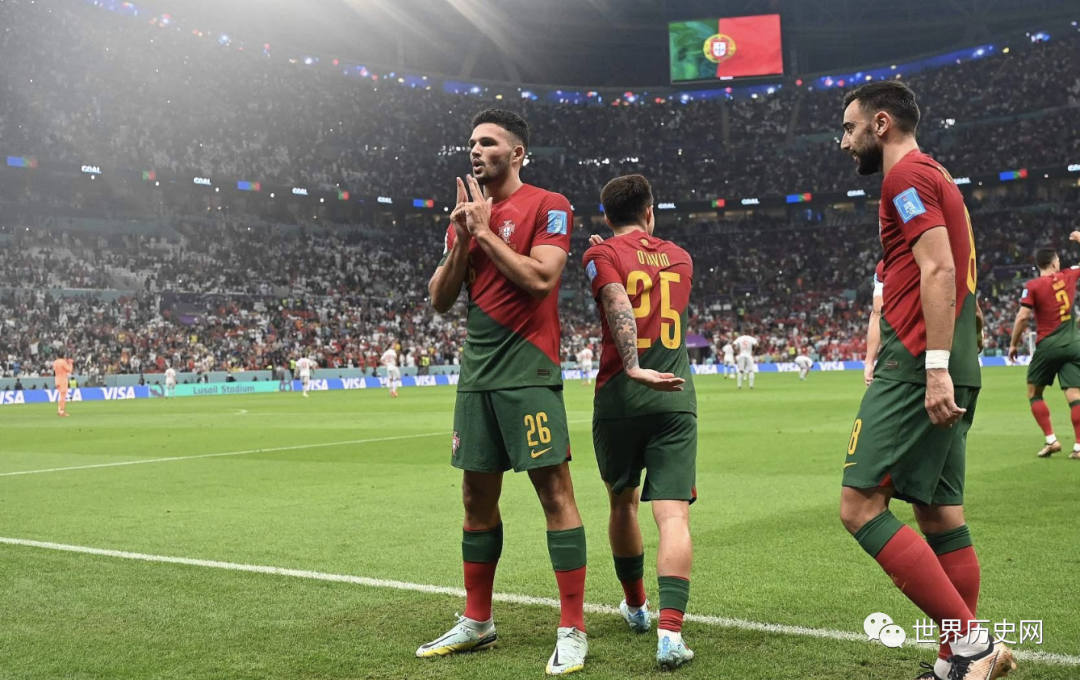 2022年12月7日,葡萄牙队以6:1的大比分淘汰瑞士队夺得最后一个席位,本届世界杯八强队伍全部出炉,来自5支欧洲的球队:克罗地亚、荷兰、葡萄牙、英格兰、法国;2支南美球队:巴西、阿根廷;1支非洲球队:摩洛哥。