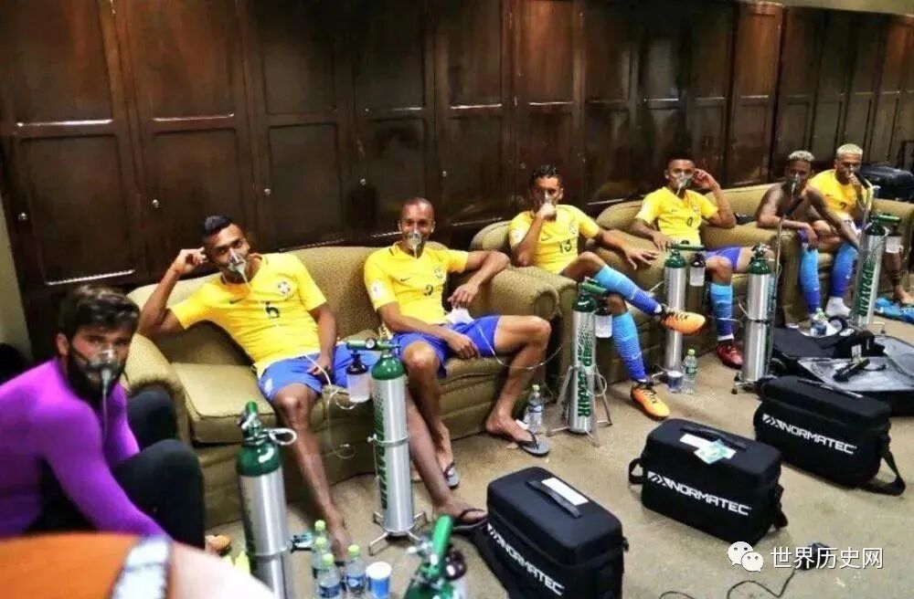 巴西队客战玻利维亚后在更衣室集体吸氧