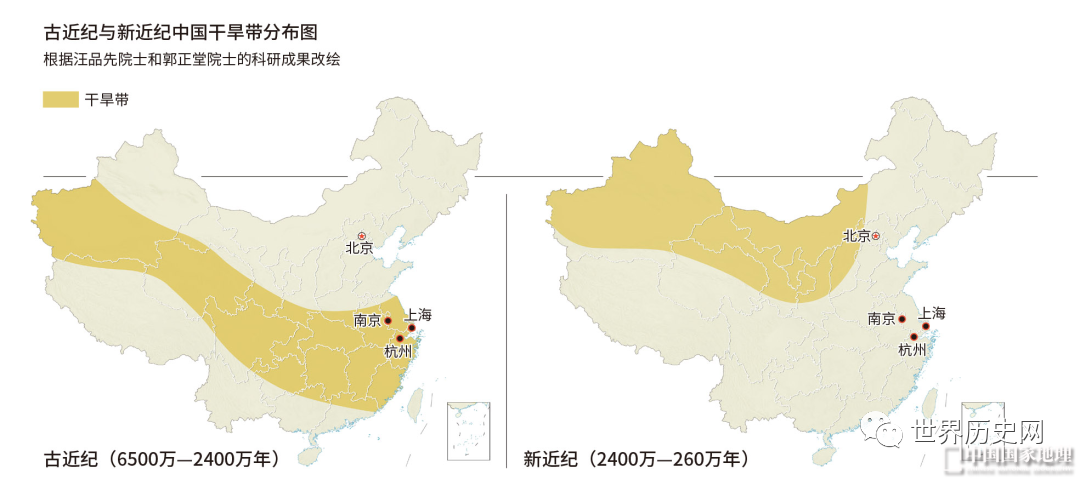 到了新近纪(2400万—260万年前),这条荒漠带位置转移到了今天我国西北干旱区的位置。