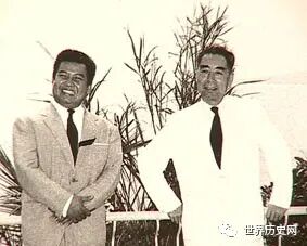 1955年4月在印度尼西亚举行万隆亚非会议期间,西哈努克与周恩来结下友谊。