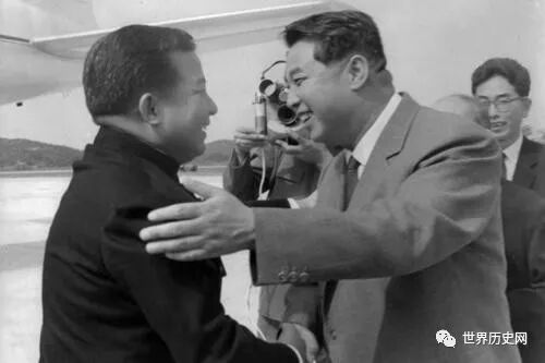 1956年2月14日,西哈努克首次踏上中国的土地。虽然当时两国尚未建交,但中国政府的迎接队伍是最高规格的,周恩来冒着寒冷的天气亲自到机场迎接。
