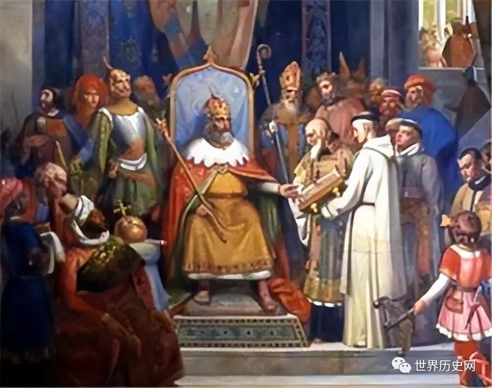 在公元481年至843年,西欧有一个国家名为“法兰克王国”的封建王国,它全盛时期称“查理曼帝国”,查理大帝在公元800年由罗马教皇利奥三世加冕“罗马人的皇帝”。