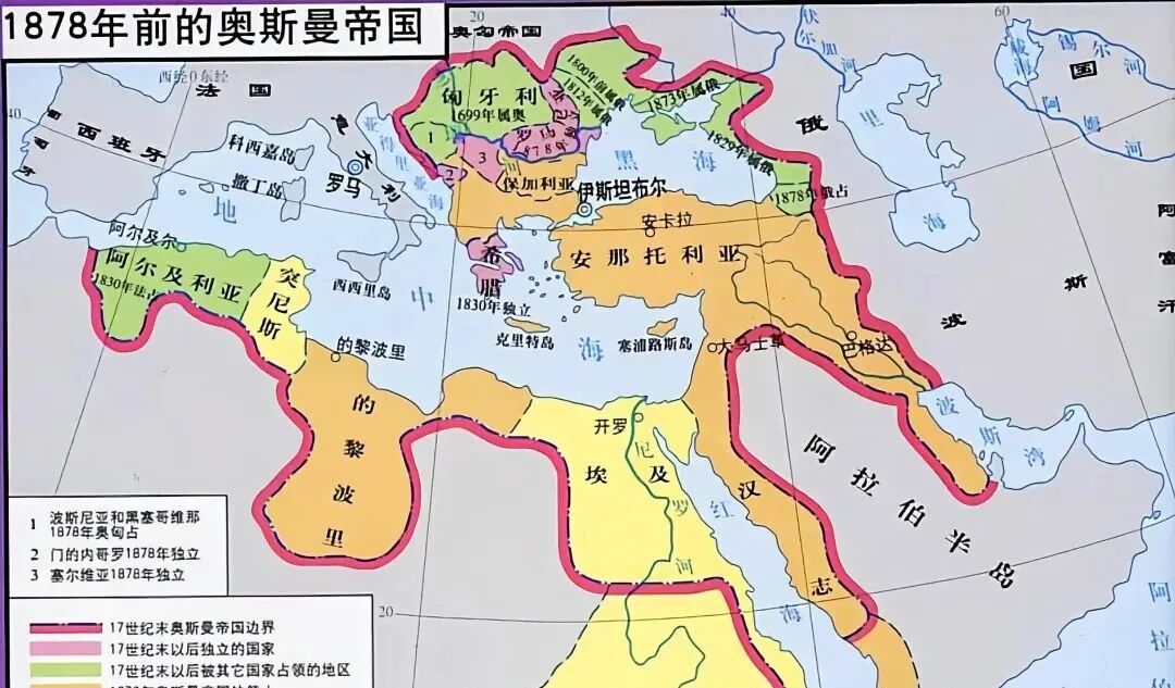 奥斯曼境内的各民族开始摇旗呐喊“独立”和“革命”,而1832年的希腊独立成为了多米诺骨牌效应的开端,此后的数十年间,塞尔维亚、保加利亚、黑山、阿尔及利亚、埃及各地纷纷脱离了奥斯曼帝国。
