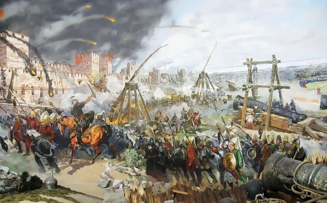 1453年4月6日,穆罕默德亲率八万大军和数百艘战船,分海陆两路进军君士坦丁堡。战争持续了整整53天,双方死伤惨重,但是奥斯曼军队还是凭借着火器优势,在5月20日这天晚上轰开了坚不可摧的君士坦丁堡城墙,杀进了城中,5月29日奥斯曼军队完全占领了整座城池。