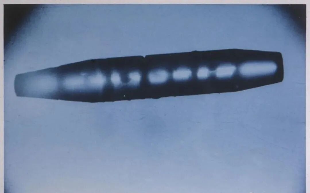 而另一张据说也是来自于福波斯最后拍摄的照片,更清晰地展示了这个雪茄状UFO的样子,只是这张照片并未得到苏联方面的证实。