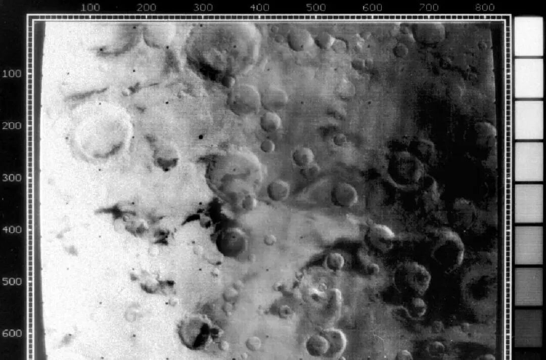 1964年,在经历几次失败后,美国的水手4号探测器成功飞越火星,并传回了第一张火星表面的照片,这是第一次从地球以外的另一个行星上拍回的照片,这张布满了陨石坑,死寂世界的照片,让科学界极为惊讶,由此,美国在火星计划方面又超越了苏联。
