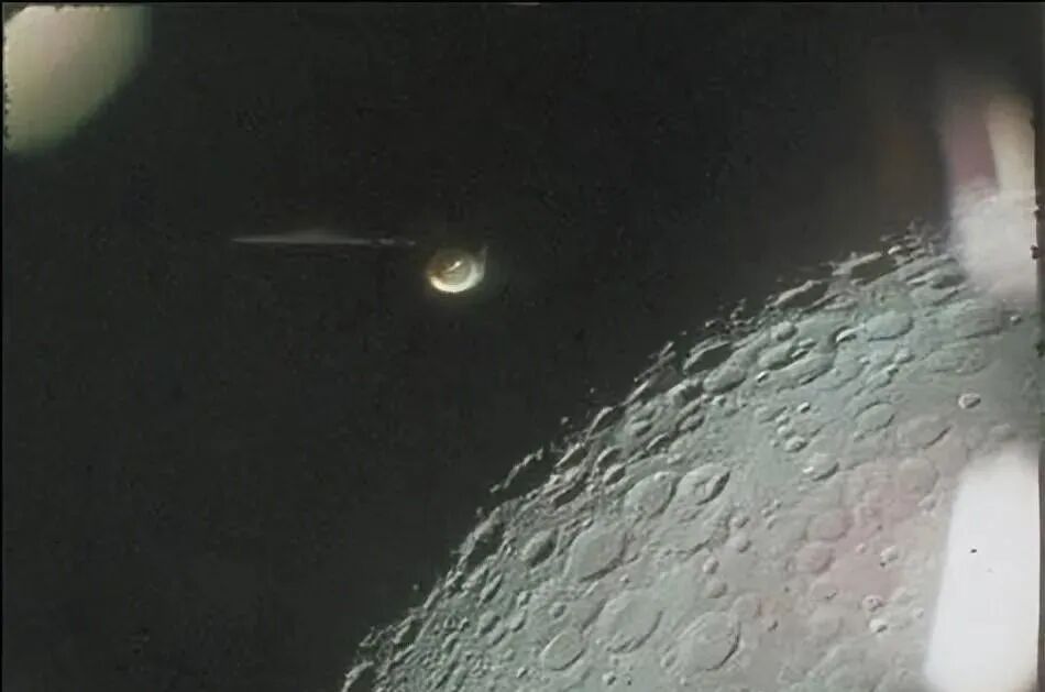 可以看到。这个雪茄型UFO飞过或者降落在了火卫一上,而且从大小和距离可以判断并不是流星,而将视频一帧一帧播放时,可以发现这个雪茄状UFO在移动时,有一个光点,是和它同步移动的,将照片放大,可以看到,这个雪茄状物体的头尾,还有一些凸起,并不是十分的圆滑,所以可以断定,不是流星或者彗星的拖尾,因为这是一个表面很均匀的实体。