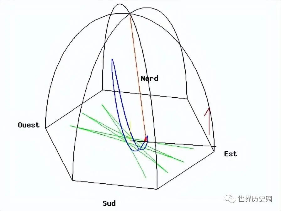 这是傅科摆首次向世界成功地证明了“地球在自转”。经过不断观测和计算得出,大摆锤在沙盘上留下的两个运动轨迹之间,相差大约3毫米左右。也就是每经过31小时47分,发生偏转11°20'之后,都会回到原点,而这扭转的方向速率恰恰是巴黎纬度。这不是巧合,而是真实存在。