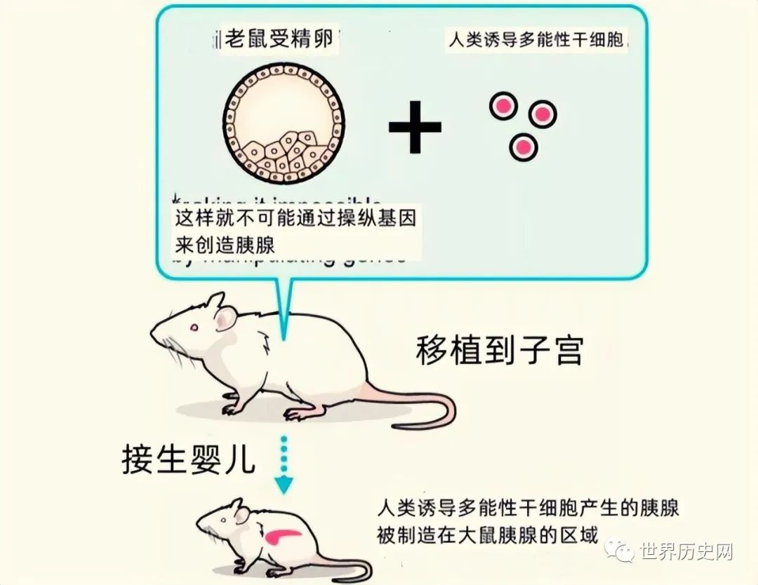 而是将人类的干细胞注入到兽类的胚胎中,从而在胚胎中引发人类细胞的发育和分化,最终得到一种包含人类细胞的胚胎。