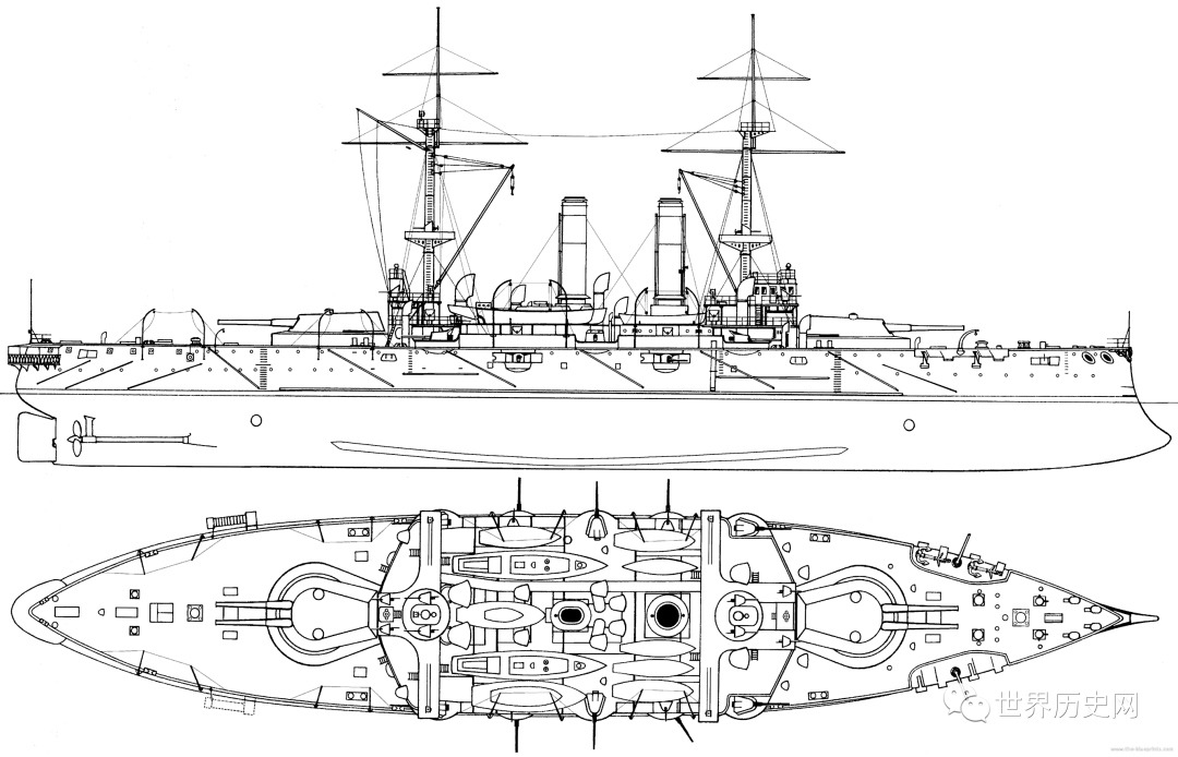 代号分别:敷岛、朝日、初濑和三笠,按照英国对战列舰级别的划分,属于“前无畏级”战列舰,其中最后一艘建造的战列舰“三笠号”非常特殊,几乎代表了当时英国战列舰制造的最高水平。