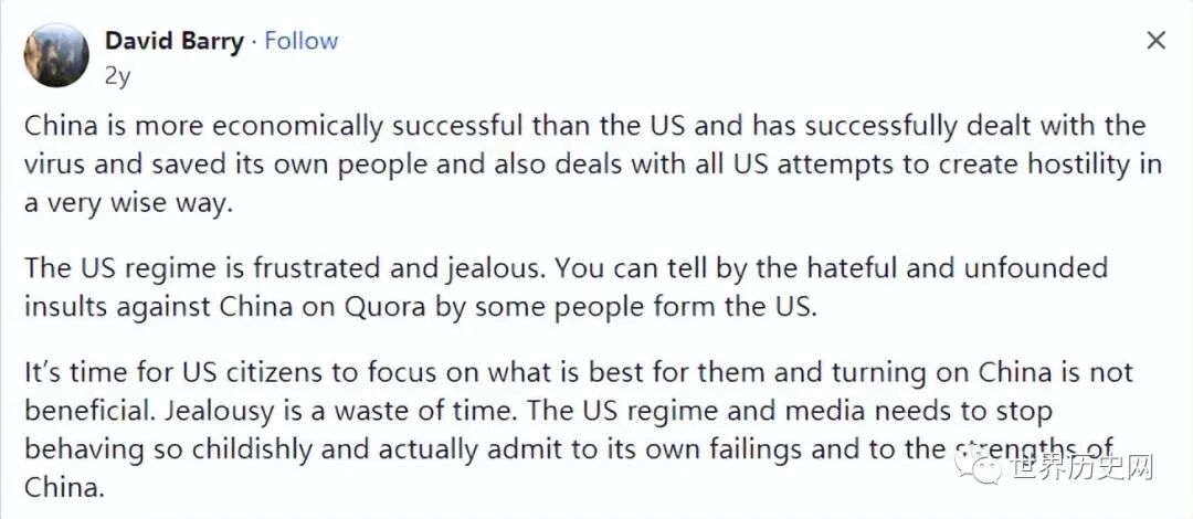 你可以从一些来自美国的人在Quora上对中国的仇恨和毫无根据的侮辱中看出,美国政权感到沮丧和嫉妒。