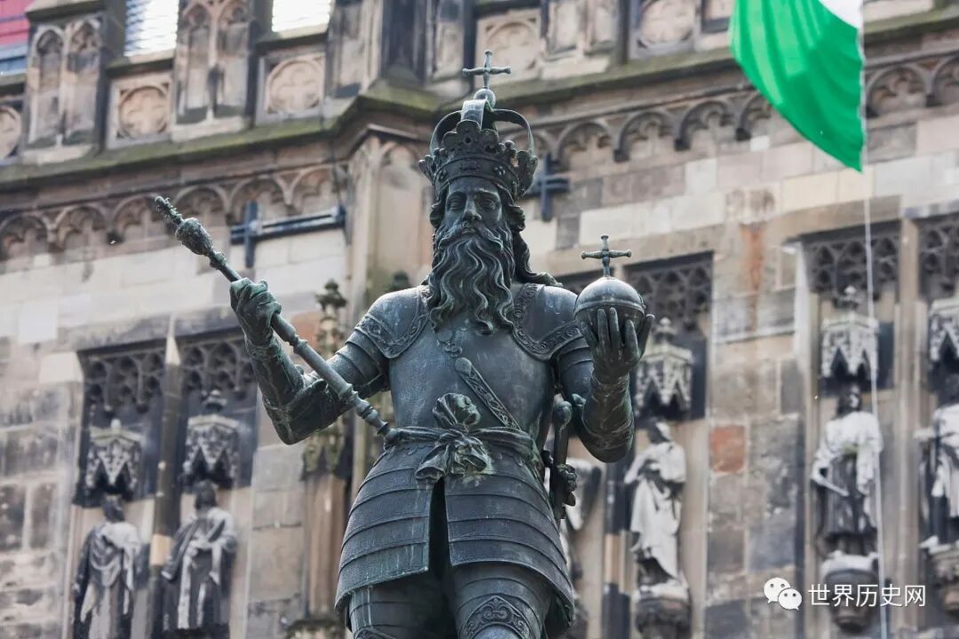 768年,丕平的儿子查理(742—814年)继承了王位。他在位四十六年,大大扩张了王国的版图,以武力迫使众多的部落、部族臣服于他的统治,使加洛林王朝达到极盛。