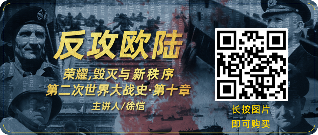 ▲ 长按识别图中二维码,即可获得徐恺主讲的《反攻欧陆-第二次世界大战史·第十章》音频专辑。注:购买过《荣耀,毁灭与新秩序》大系列专辑的用户,可以直接收听第一章《阴云密布》,不必重复购买。