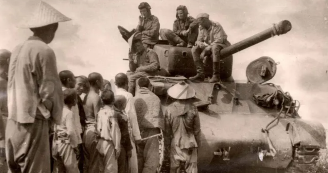 ◇ 图为攻入中国东北地区,苏军近卫第9机械化军装备的谢尔曼坦克