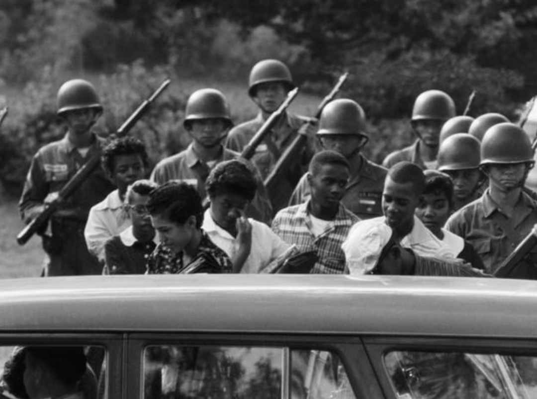 ◇ 发生在阿肯色州的“小石城事件” 图为被101空降师保护的黑人学生