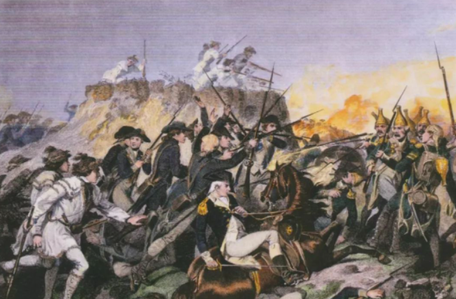 ◇ 萨拉托加战役中,民兵正跟在大陆军后面攻击一座黑森佣军把守的多面堡