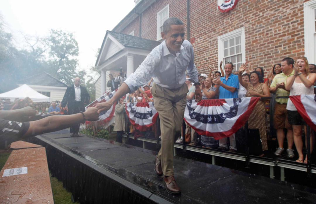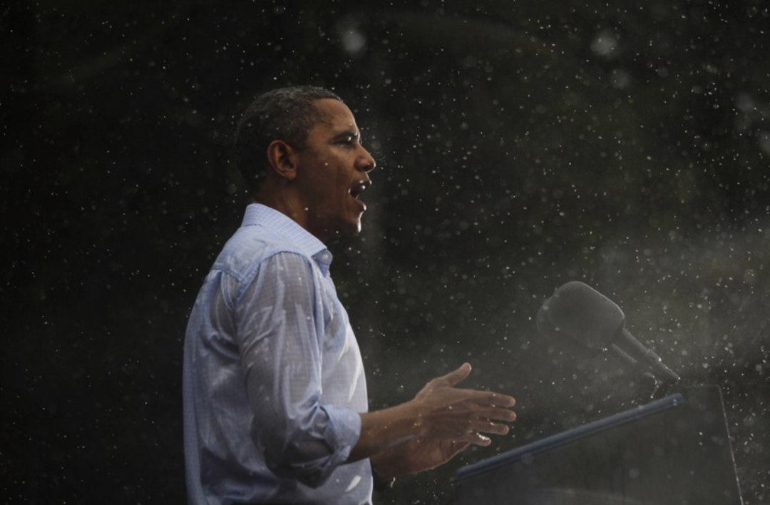 ◇ 奥巴马坚持在雨中演讲拉票,反而更能赢得选民好感