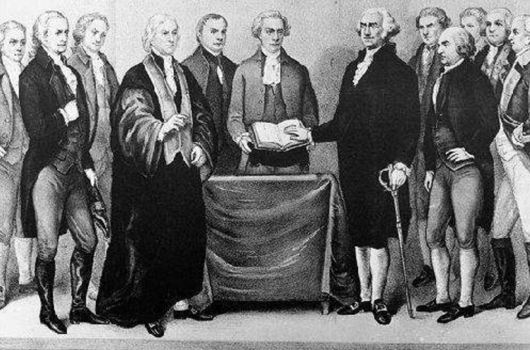 ◇ 1789年4月30日,乔治·华盛顿手按《圣经》宣誓就职,成为美国历史上第一任总统