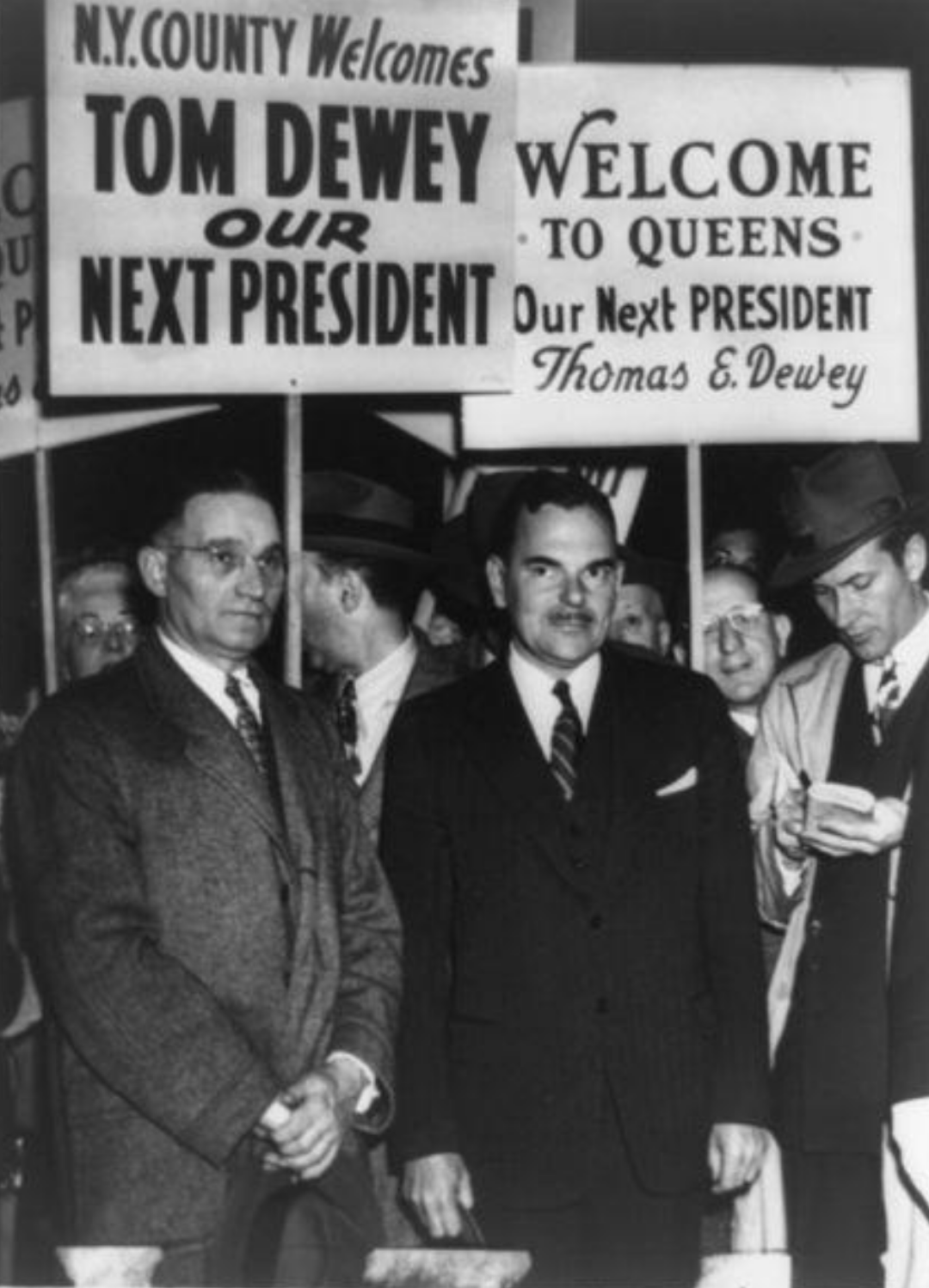 ◇ 杜威的竞选活动,标语上写着“欢迎杜威,我们的下一任总统”。