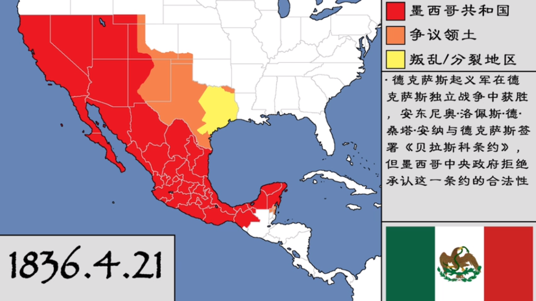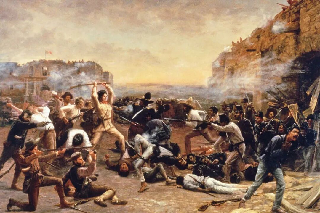 1836年2月,桑塔安纳进攻军事堡垒阿拉莫,在两个星期的进攻之后残忍地杀死了要塞里的所有德克萨斯的士兵,阿拉莫要塞抵抗者的英勇奋战和悲惨遭遇迅速被传遍整个德克萨斯的美国移民社区,“勿忘阿拉莫”成了大家团结一致的战斗口号,而德克萨斯的民兵也同仇敌忾,在四月份的圣哈辛托战役中大败墨西哥军队,甚至独裁者桑塔安纳自己都成了俘虏(关于阿拉莫之战详见:阿拉莫之战:德州人民如何对付独裁者?| 循迹晓讲)。