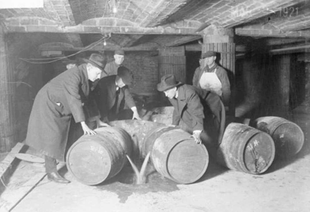 ◇ 图为1921年查获并销毁私酒的场景