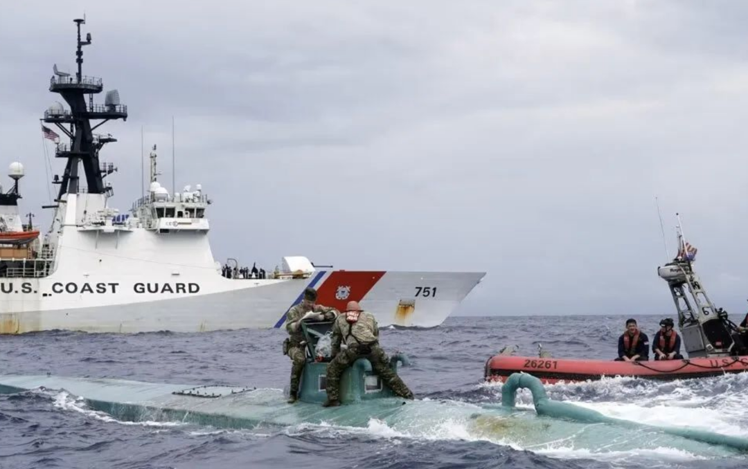 ◇ 美国海岸警卫队“瓦什”号巡逻艇的执法登船队拦截一艘自航式半潜毒品走私船,成功查获2.5吨可卡因