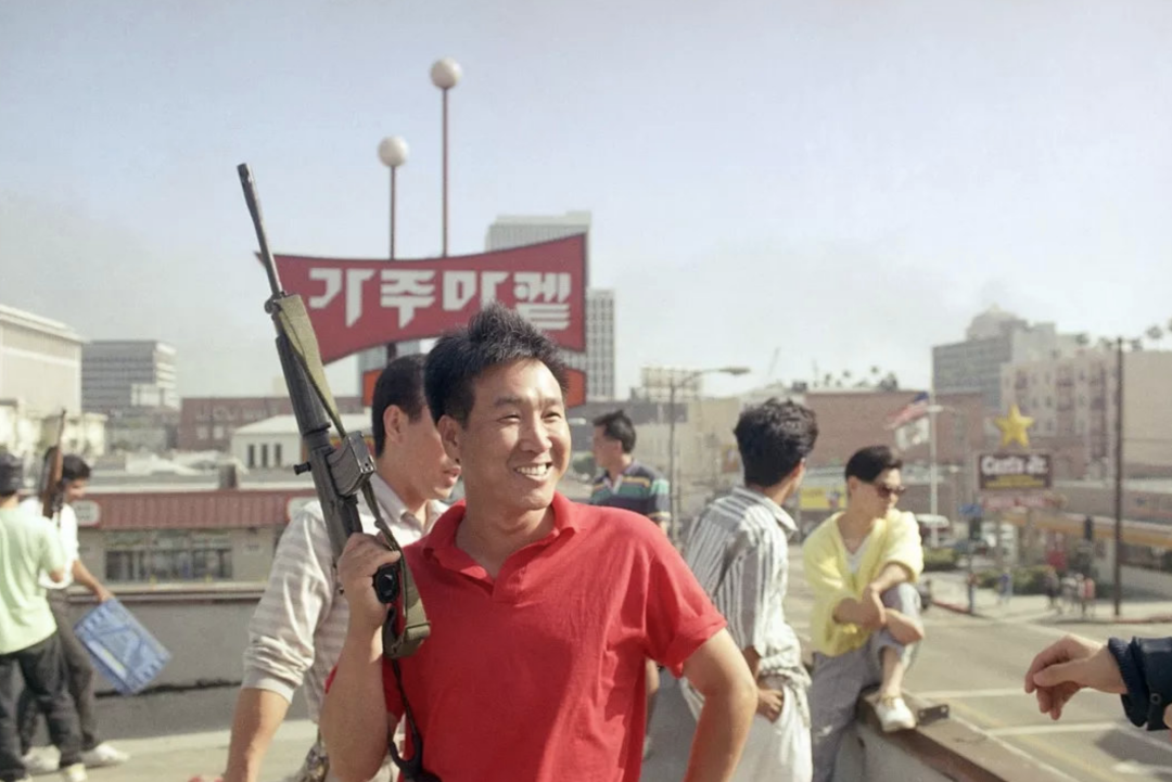 ◇图为1992洛杉暴乱中,保卫私有财产不受暴徒侵犯的“屋顶上的韩国人”