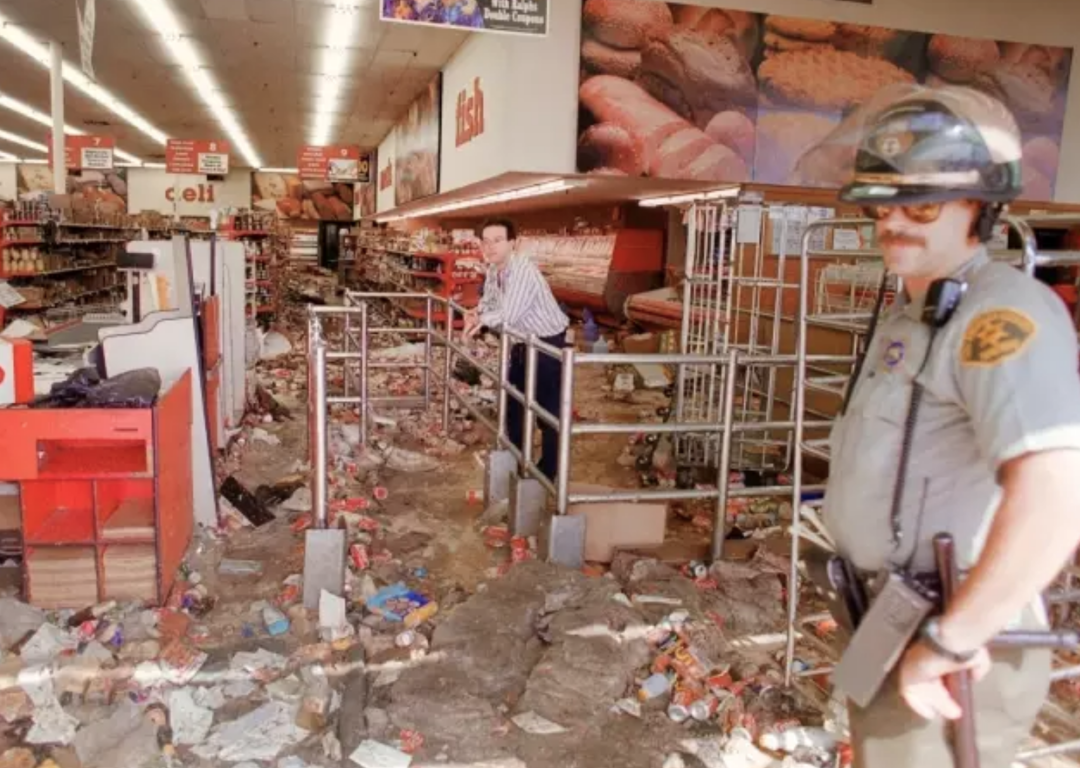 ◇图为1992洛杉矶暴乱中,被暴徒洗劫一空的超市