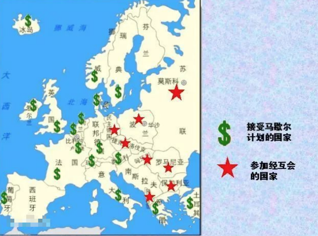 在此期间,捷克斯洛伐克外交部长也表示本国欢迎马歇尔计划,结果被斯大林严厉训斥,命令波兰和捷克代表团不得跟资本主义的金钱打交道,随后,各东欧国家“自愿”地表示跟马歇尔计划坚决划清界限,斯大林很满意,于是在苏联的操控下搞了个马歇尔计划的苏联东欧版,也就是“莫洛托夫计划”,后来发展成为“经济互助委员会”,这成了苏联控制东欧重要的手段,也标志着美苏两大集团的决裂和冷战的开始。