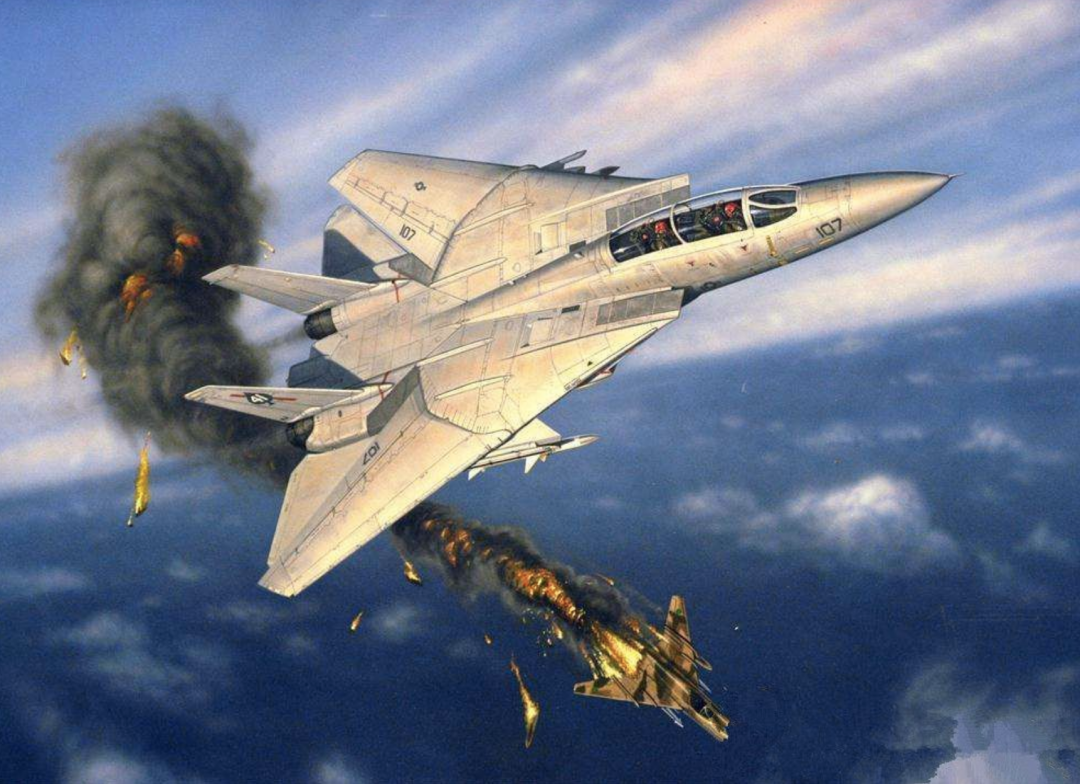 此时在尼米兹号上空的鹰眼预警机发现了利比亚战斗机并通知两架F-14前去拦截。美国和利比亚并非是交战状态,美国飞行员按照国际惯例呼叫飞行员,希望他们的飞机离开,利比亚飞行员非但不听,还发射了苏联产K-13环礁导弹。苏联的导弹性能真的是一言难尽,F-14凭借自己的机动性就躲开了导弹,随后两架F-14也没客气发射响尾蛇导弹干净利落地击落了利比亚飞机。