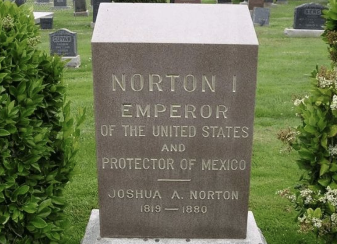 1880年1月8日,在前往科学院演讲途中,诺顿一世突然晕倒在地,收到皇帝陛下出事的警情,旧金山警察火速赶到现场,快马扬鞭地将陛下送到市立医院。然而诺顿一世还是在到达医院之前不幸“驾崩”。他生前没有子嗣,当皇帝也就是自己过瘾,也没想着在哪儿写个秘密立储的小纸条,所以他这一死,美利坚合众国痛失皇帝陛下。