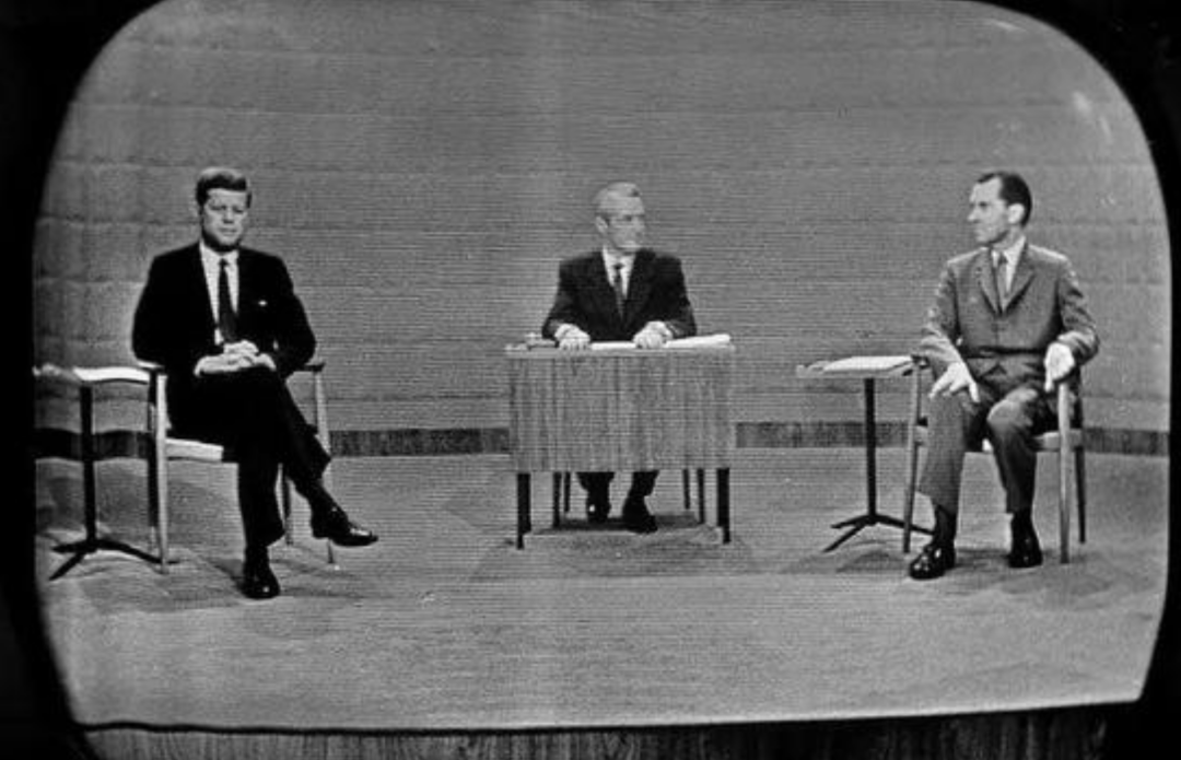 尼克松本来就不修边幅,再加上刚做完手术身体虚弱,时不时的就要擦虚汗,同时他还没有镜头感,回答问题的时候都是看着主持人侧脸对着镜头,这样他的谢顶通过电视画面就变得更明显。而肯尼迪英俊潇洒风度翩翩,回答问题更愿意直视镜头说话,观众眼缘比尼克松好到不知道哪里去了。在竞选结束清查票数时,肯尼迪以微弱优势获胜,不少选民都说:自己本来想投尼克松,但因为看了电视直播才改投肯尼迪。
