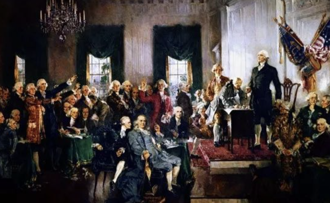 ◇ 图为1787制宪会议现场复原油画