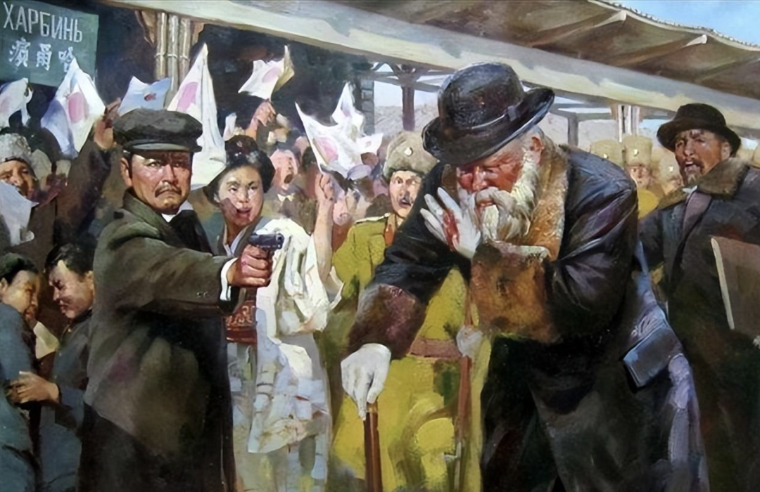 ◇ 图为安重根刺杀伊藤博文复原画