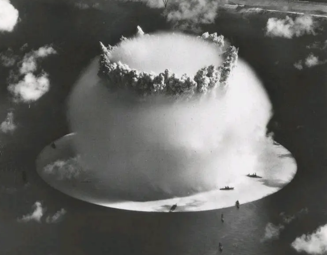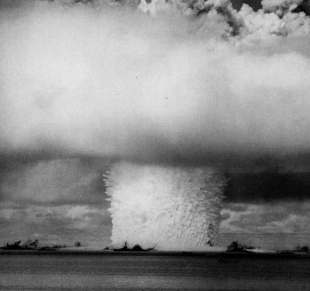 ◇ 图为十字路口行动中水下核爆实验,可见周围停泊的实验靶舰