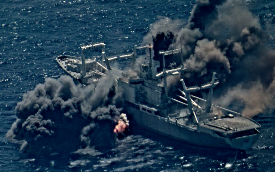 在经历了25天的各种打击之后,美军引爆了预设在内部的炸药,才终于将这艘航母沉在水底。当时一些军事杂志上还为这件事写了专栏,标题叫做《美国击沉了美国》,说起来美国人也是心大一点不嫌忌讳,起码在击沉之前把航母改名叫本·拉登也像那么回事。