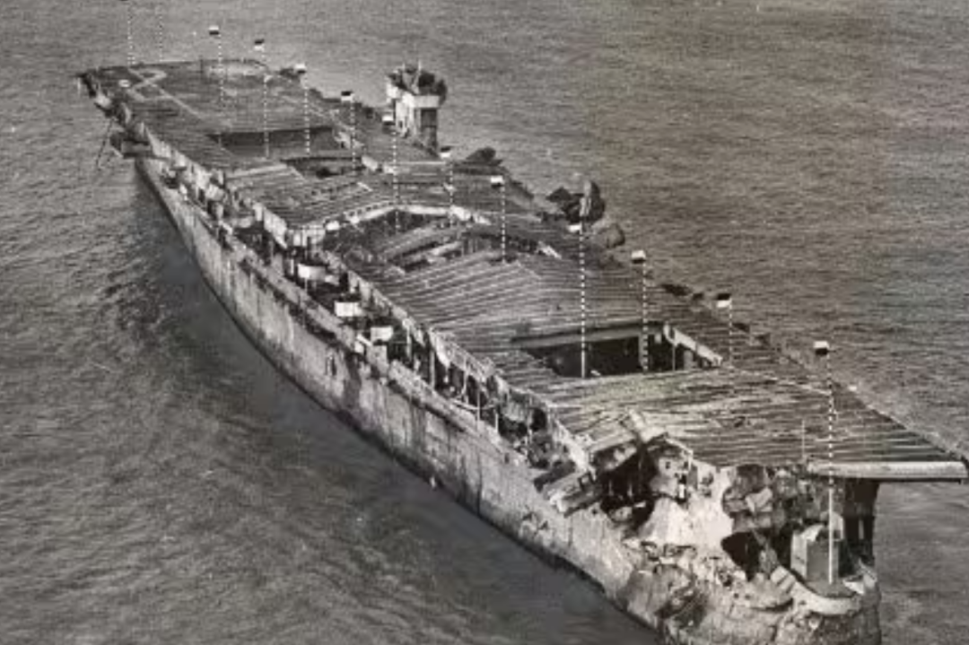 ◇ 图为小鹰级3号舰美国号航母击沉实验